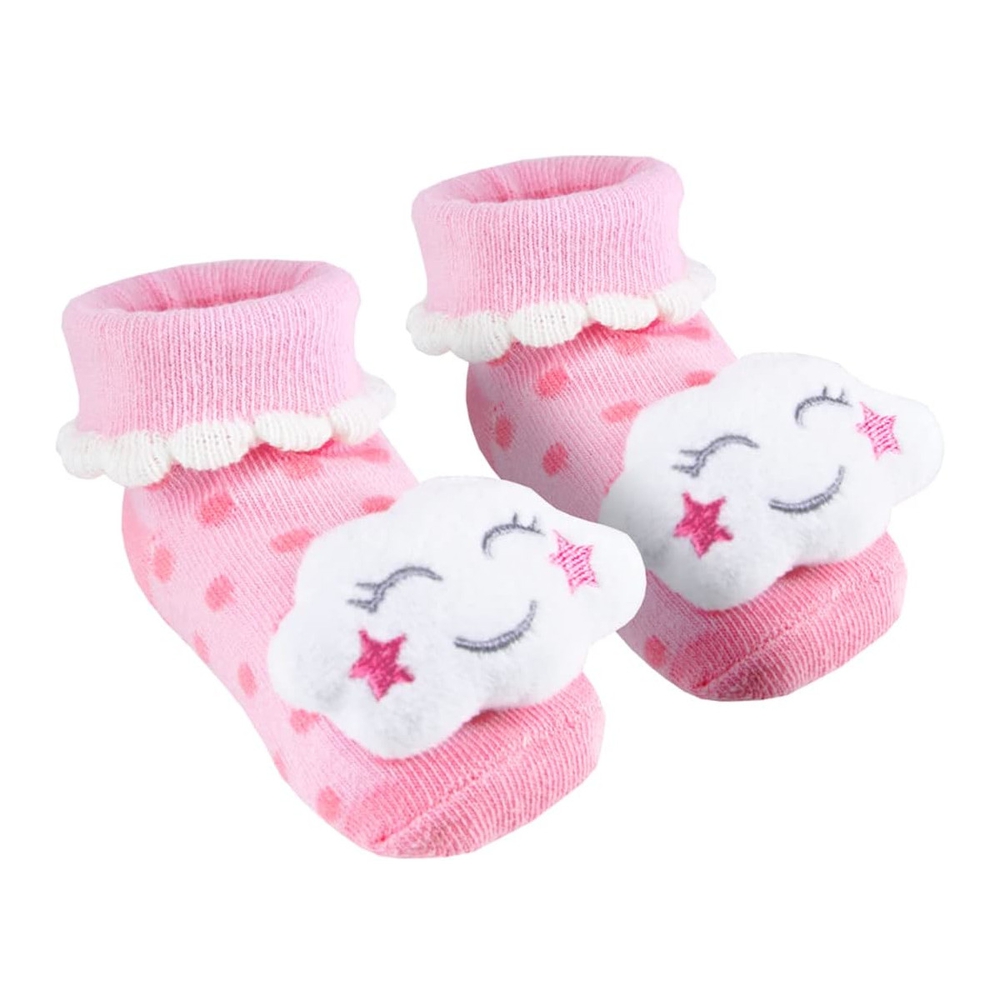 Par de Meias Antiderrapantes com Chocalho - Nuvem Rosa - Buba