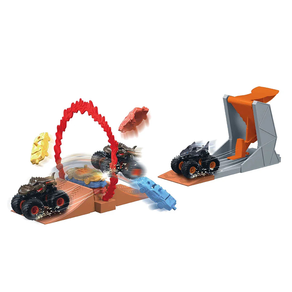 Contém: 1 conjunto de pista, 1 carro monster truck e 3 carroceria