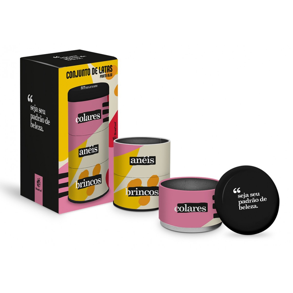 Além de todo esse encanto é uma ótima opção para você presentear aquela mulher incrível que você ama. As latinhas de metal se encaixam umas nas outras e são super fáceis de abrir e fechar. Vai ficar muito mais fácil e prático encontrar os acessórios na hora de arrasar com aquele super look.