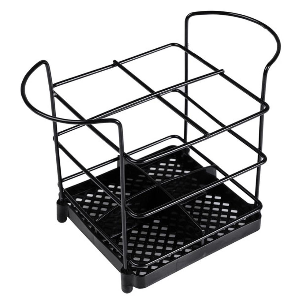 Produzido com uma estrutura metálica robusta em acabamento preto, ele possui quatro divisórias internas que permitem separar garfos, facas, colheres e utensílios de servir de maneira prática e funcional. Sua base plástica vazada facilita o escoamento da água, evitando o acúmulo de umidade e garantindo uma secagem mais higiênica, enquanto as alças laterais integradas proporcionam total segurança e facilidade no transporte da cozinha para a área de refeições. Com um design industrial minimalista, este organizador une durabilidade e estilo, adaptando-se perfeitamente a qualquer decoração contemporânea.