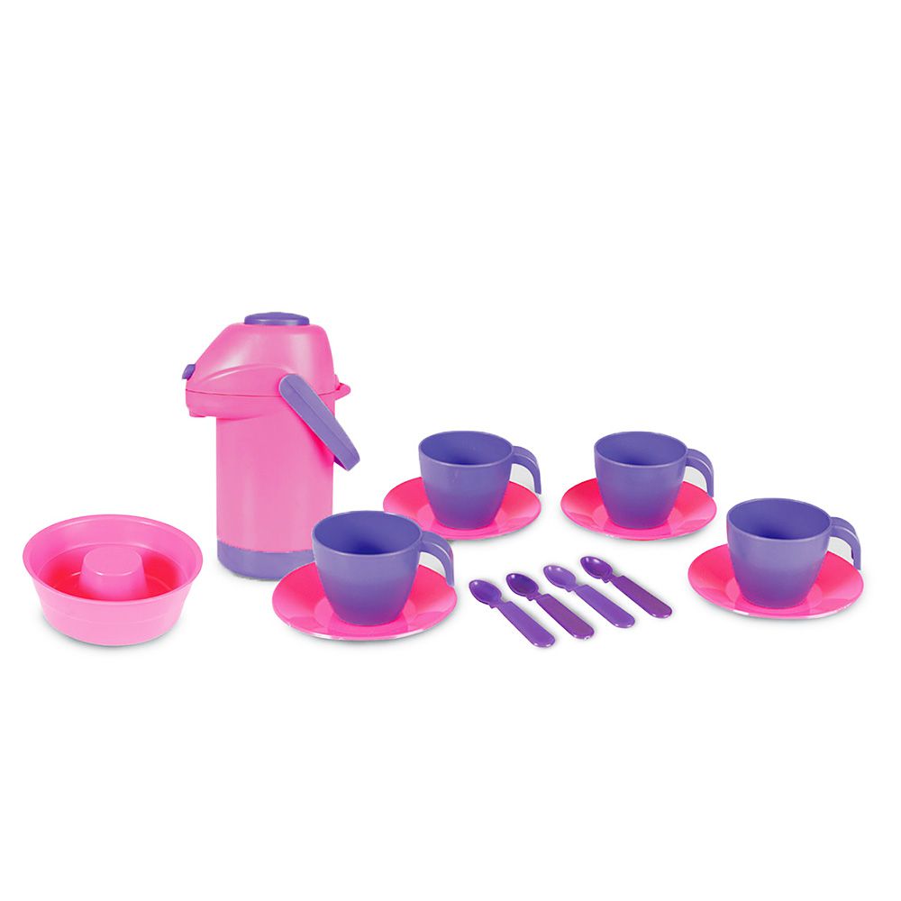 Café com bolinho, da Nig, é fabricado em plástico de alta qualidade para garantir durabilidade e resistência durante seu uso. Muito divertido, este kit chegou para deixar o café da tarde muito mais charmoso, apresentando peças em rosa e roxo, em que, ao apertar a garrafa sai água de verdade para as meninas prepararem o café, chá ou suco, além de vir com uma forminha para que elas preparem um delicioso bolo. Agora é só chamar as amiguinhas arrumar a mesa com as belas xícaras e usar a imaginação.