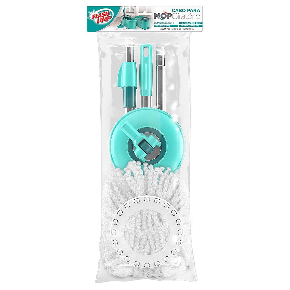 O cabo para Mop Giratório, da linha Flash Limp, possui 5 peças de encaixe para atender suas necessidades. São 3 peças para o cabo, permitindo variar de 104cm à 128cm de altura, além de acompanhar base para o esfregão e refil de microfibra, em que sua estrutura permite uma limpeza profunda, sem danificar as superfícies e um alto poder de absorção, reduzindo ou até mesmo eliminando o uso de produtos químicos. O conjunto é compatível com Mop Giratório, Mop Giratório 3 em 1 e Mop Giratório Pro.