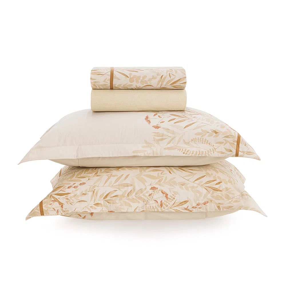 O Jogo de Cama Jade tem sua confecção em 100% Algodão Percal 180 Fios, possui estampa de ramos e fundo bege, deixando seu quarto muito harmônico favorecendo combinações com outros itens da coleção. Possui estampa de ramos e fundo bege, deixando seu quarto muito harmônico favorecendo combinações com outros itens da coleção. Acompanha lençol com elástico tinto, sobre lençol com estampa geométrica em marrom e 2 fronhas estampadas, composição que traz ao ambiente muito aconchego.