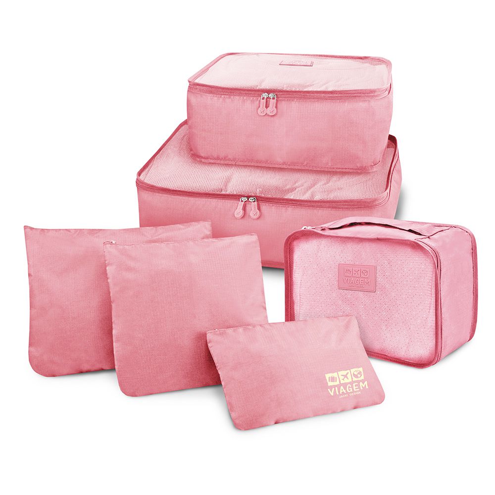 Kit Organizador de Malas 6 Peças - Rosa - Jacki Design