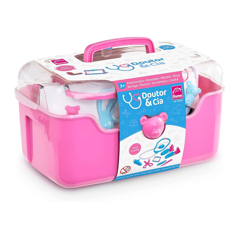 A maleta Doutor & Cia da Roma Babies é um conjunto de instrumentos médicos, que inclui, além da maleta, um otoscópio, um estetoscópio, um martelinho, um termômetro, uma pinça, uma seringa, uma tesoura e até um crachá. É uma linha completa e super divertida para as crianças que gostam de brincar de cuidar de pacientes. Chame suas amiguinhas e seja uma brilhante médica!