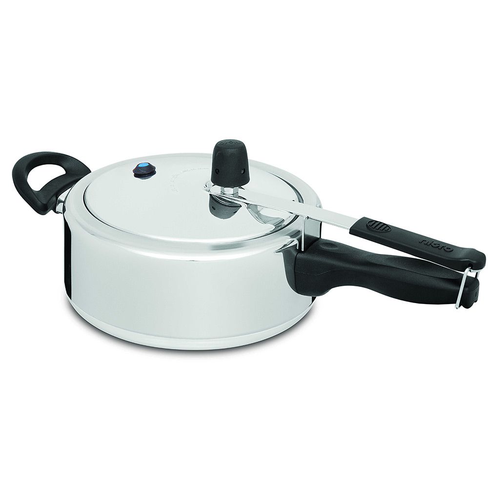 A panela de pressão Expressa da Nigro é rápida, prática, segura, econômica e conta com capacidade para 3 litros. Possui tampa com diâmetro maior e encaixe perfeito, facilitando a retirada dos alimentos e a limpeza. É fabricada em alumínio espesso com liga especial, garantindo maior durabilidade e brilho ao produto. Apresenta ainda, válvula reguladora de pressão, válvula de segurança repetitiva e cabo ergonômico em baquelite antitérmico, garantindo um manuseio mais fácil e prático da panela.