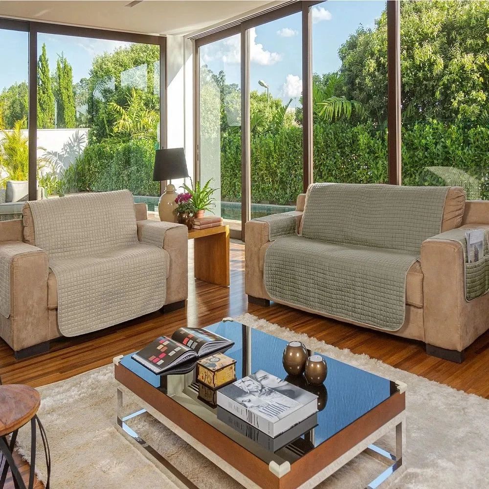 Protetor de Sofá 2 e 3 Lugares Plaza Dupla Face - Bege/Fend - Lavive