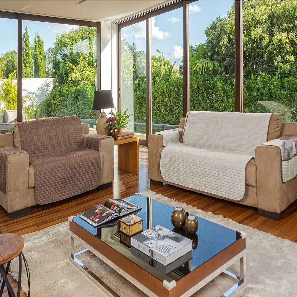 Protetor de Sofá 2 e 3 Lugares Plaza Dupla Face - Capuccino/Bege - Lavive