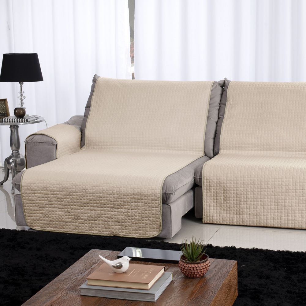 Protetor de Sofá Retrátil e Reclinável Dupla Face - 2 Peças - Bege/Fend - Lavive