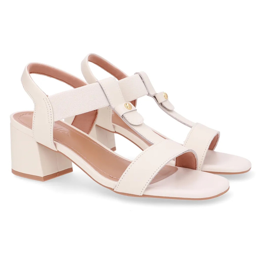 Sandália Couro Salto Médio Bloco - Marfim - Usaflex