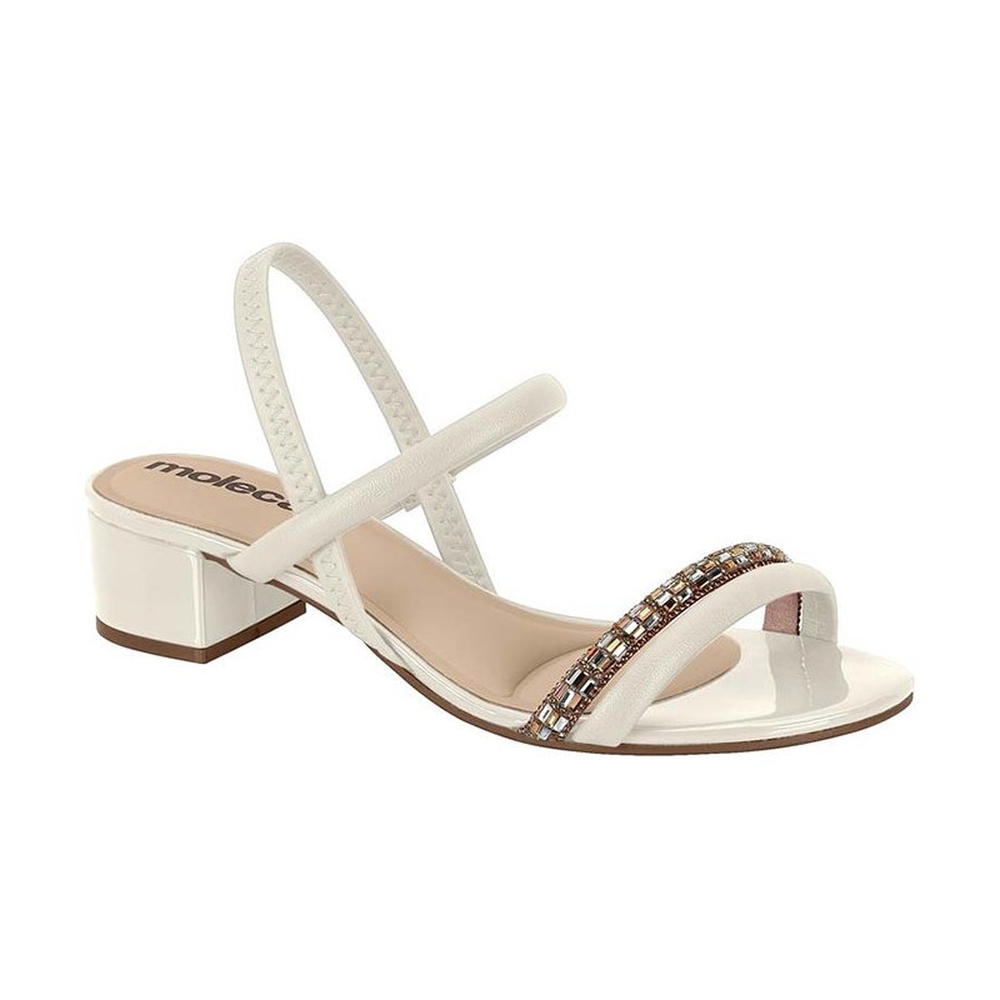 Sandália Feminina Salto Bloco Tira Brilhante - Branco - Moleca