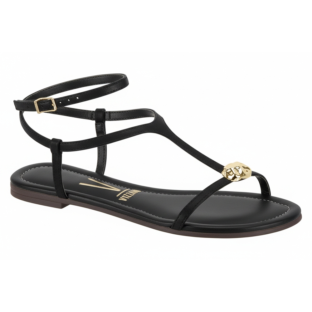 Sandália Rasteira Detalhe Dourado - Preto - Vizzano