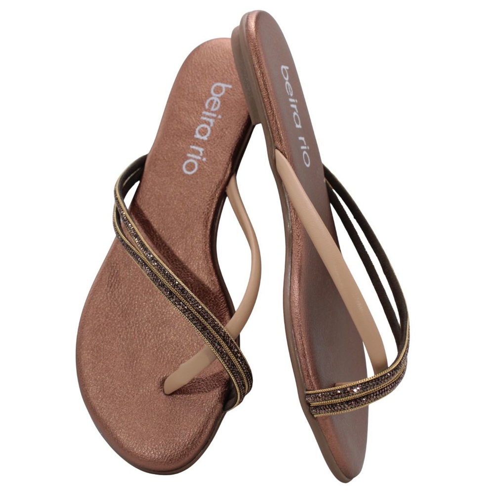 O modelo se destaca pelo seu design flat, que garante o máximo de conforto e leveza no calce. Confeccionada em material sintético na elegante cor Cacau, ela possui tiras finas e delicadas, sendo que duas delas é adornada com uma aplicação de Strass reluzente, que adiciona um brilho sutil e sofisticado. Extremamente fácil de calçar por não possuir fechamento, esta sandália conta com a palmilha super macia da linha Beira Rio Conforto e solado emborrachado antiderrapante, perfeita para quem busca um visual moderno e bem-estar prolongado.