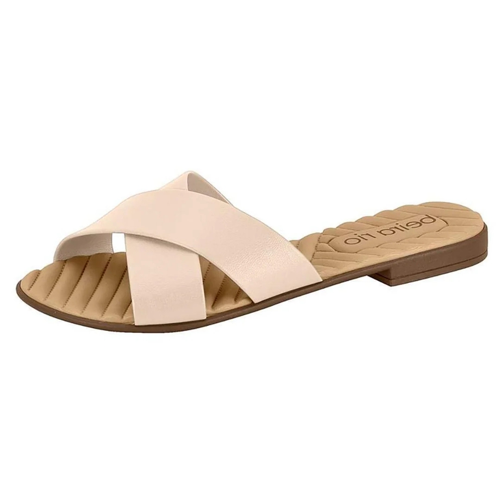 Sandália Rasteirinha com Tiras X Creme - Beira Rio