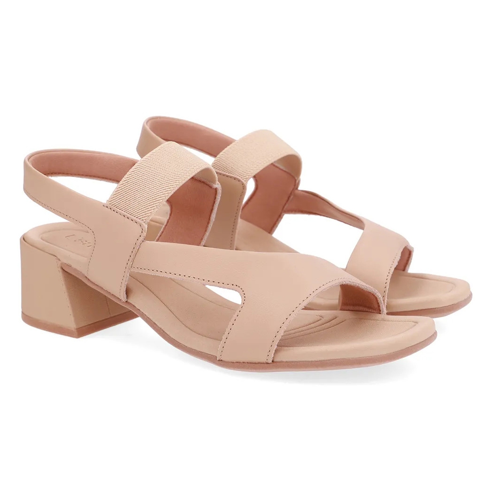 Sandália Salto Baixo Bloco Couro Tira Elástica - Bege - Usaflex