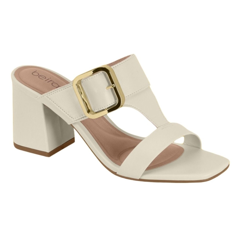 Sandália Salto Médio Bloco Fivela Creme - Beira Rio
