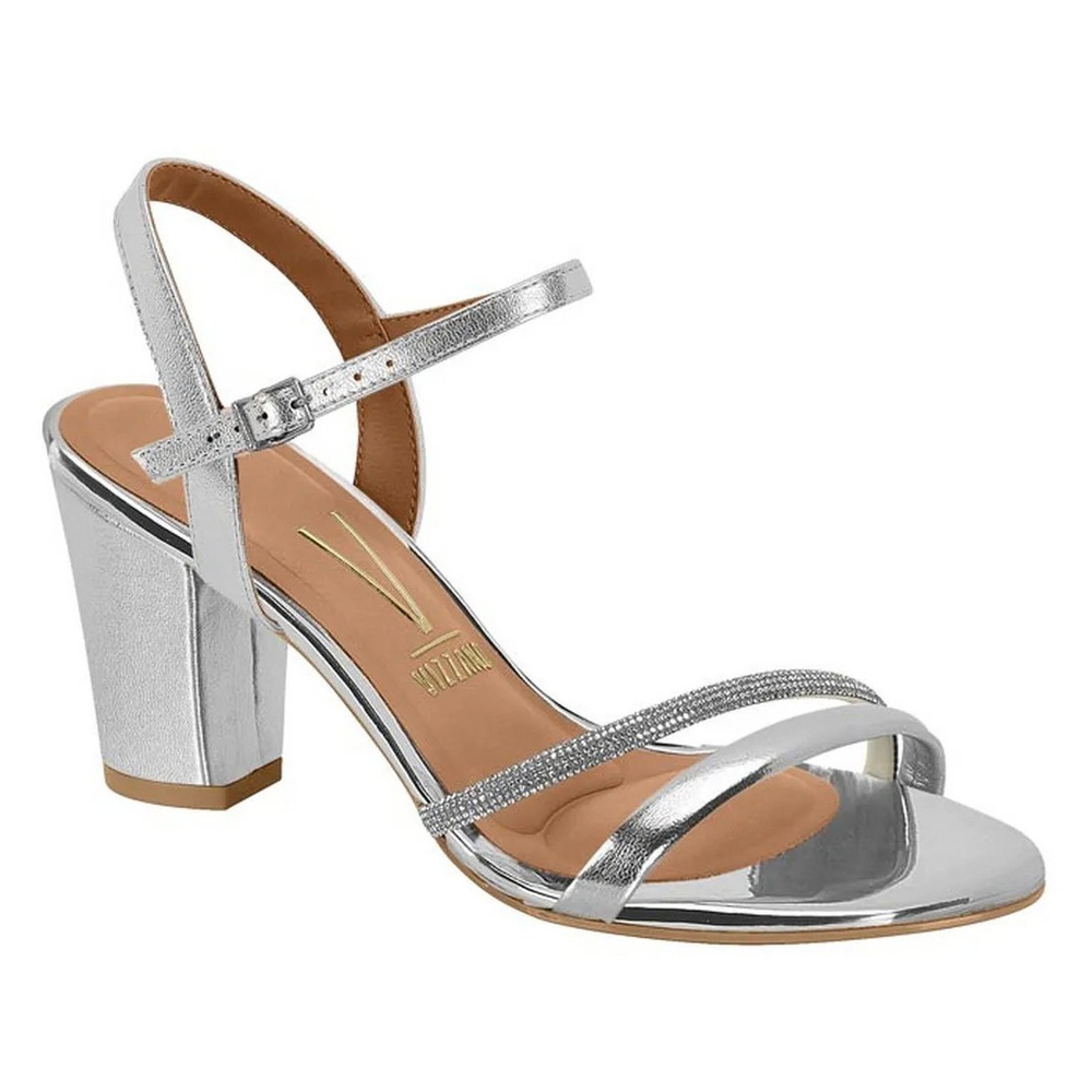 Transforme qualquer ocasião em um evento de gala com a Sandália Vizzano salto bloco com acabamento metalizado, o equilíbrio perfeito entre glamour, estabilidade e conforto. Com um design moderno e sofisticado, esta sandália apresenta duas tiras delicadas sobre os dedos e uma delas é adornada com aplicação de strass e a outra com um elegante acabamento metalizado. O salto grosso no estilo bloco com 7,5 de altura, juntamente com a palmilha macia, assegura estabilidade e bem-estar prolongado. Versátil e glamourosa, é a escolha ideal para festas, eventos formais ou para elevar instantaneamente um look casual.