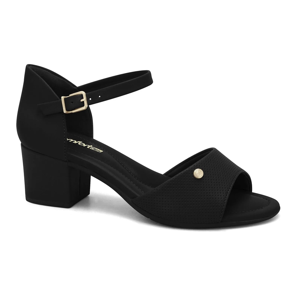 Sandália Salto Médio Bloco - Preta - Comfortflex