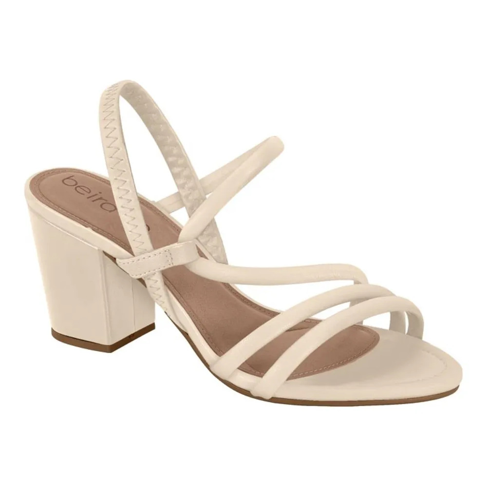 Esta é uma elegante sandália de salto bloco da marca Beira Rio, apresentando um tom neutro de creme.