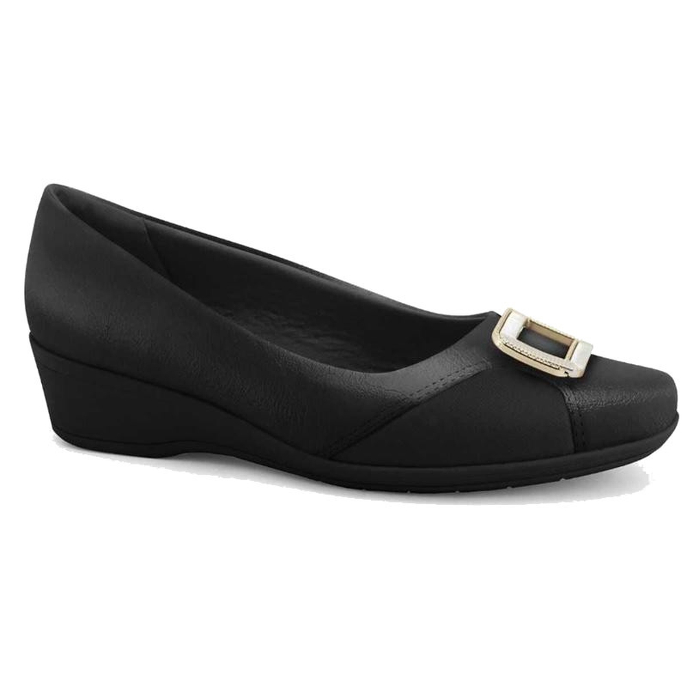 Sapato Feminino Anabela Fechado com Fivela - Preto - Comfortflex