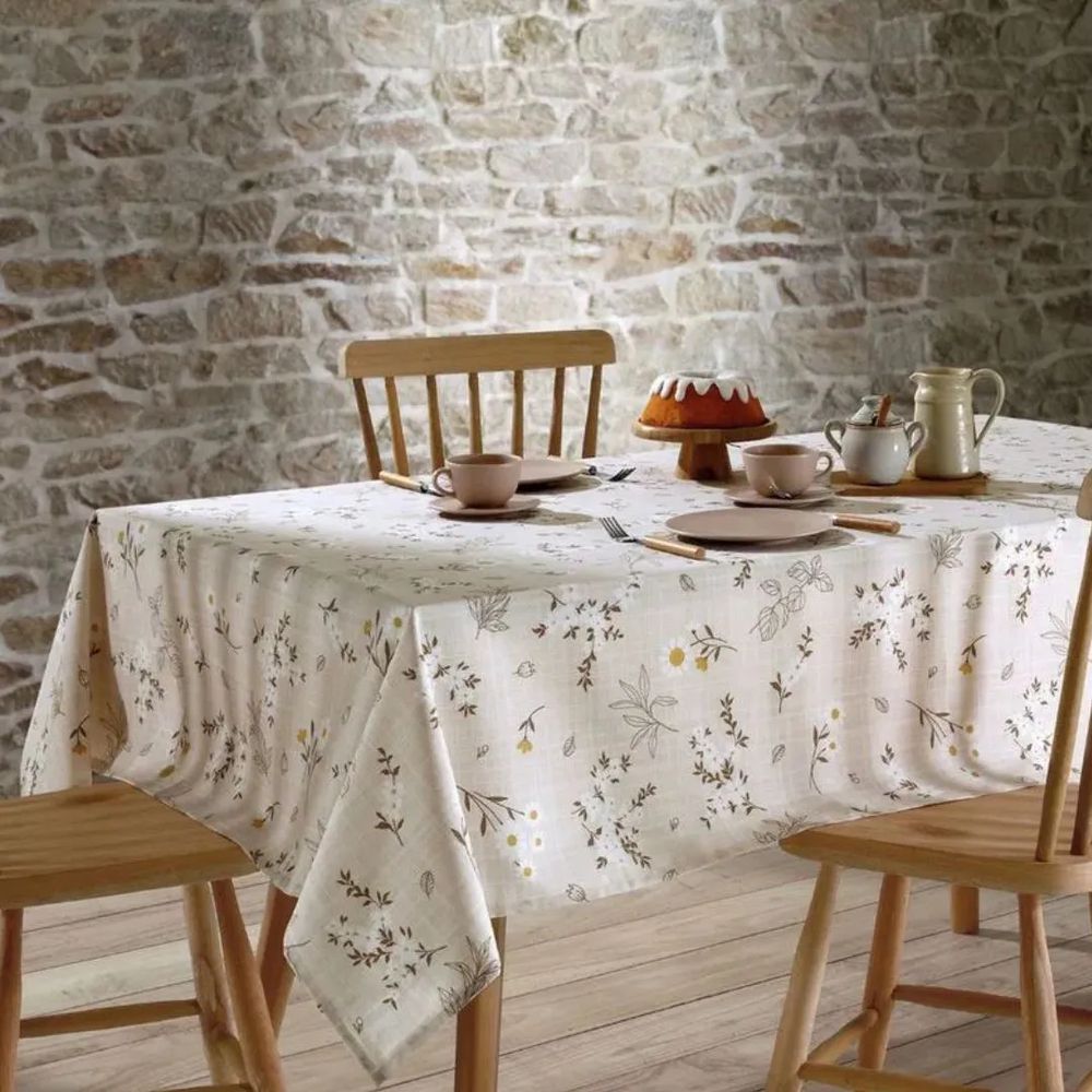 A toalha de mesa Esmeralda, da Döhler, é confeccionada em tecido de altíssima qualidade e durabilidade, sendo ideal para mesas quadradas de quatro lugares, com as medidas de 1,40m por 1,40m. Muito delicada, apresenta uma estampa que exibe flores, além de acabamento especial Döhler Clean, que protege contra manchas e permite limpá-la facilmente, bastando passar um pano de imediato. Com ela, sua cozinha ficará muito mais alegre e bonita.