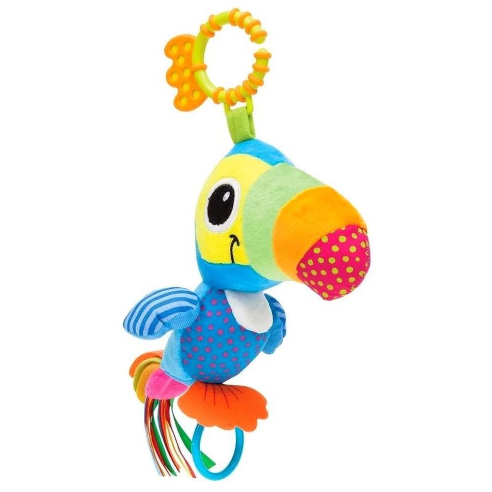 O Tucano Zuzu Atividades da Buba é um brinquedo de pelúcia super macia, ideal para a primeira infância, projetado para estimular de forma lúdica os sentidos do bebê e contribuir para seu desenvolvimento motor e sensorial; com um design alegre e cores vibrantes, inspirado na fauna brasileira, o tucano é repleto de elementos interativos, como chocalho que aguça a audição, argolas e fitas coloridas que trabalham o tato e a visão, texturas variadas para exploração tátil, além de possuir uma argola que facilita a fixação em carrinhos, berços ou bebê-conforto, sendo confeccionado com materiais atóxicos e seguros.